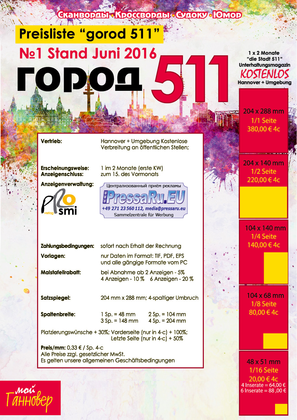 Германия, Ганновер. Раз в 2 месяца, ≈ 15-го, бесплатно.