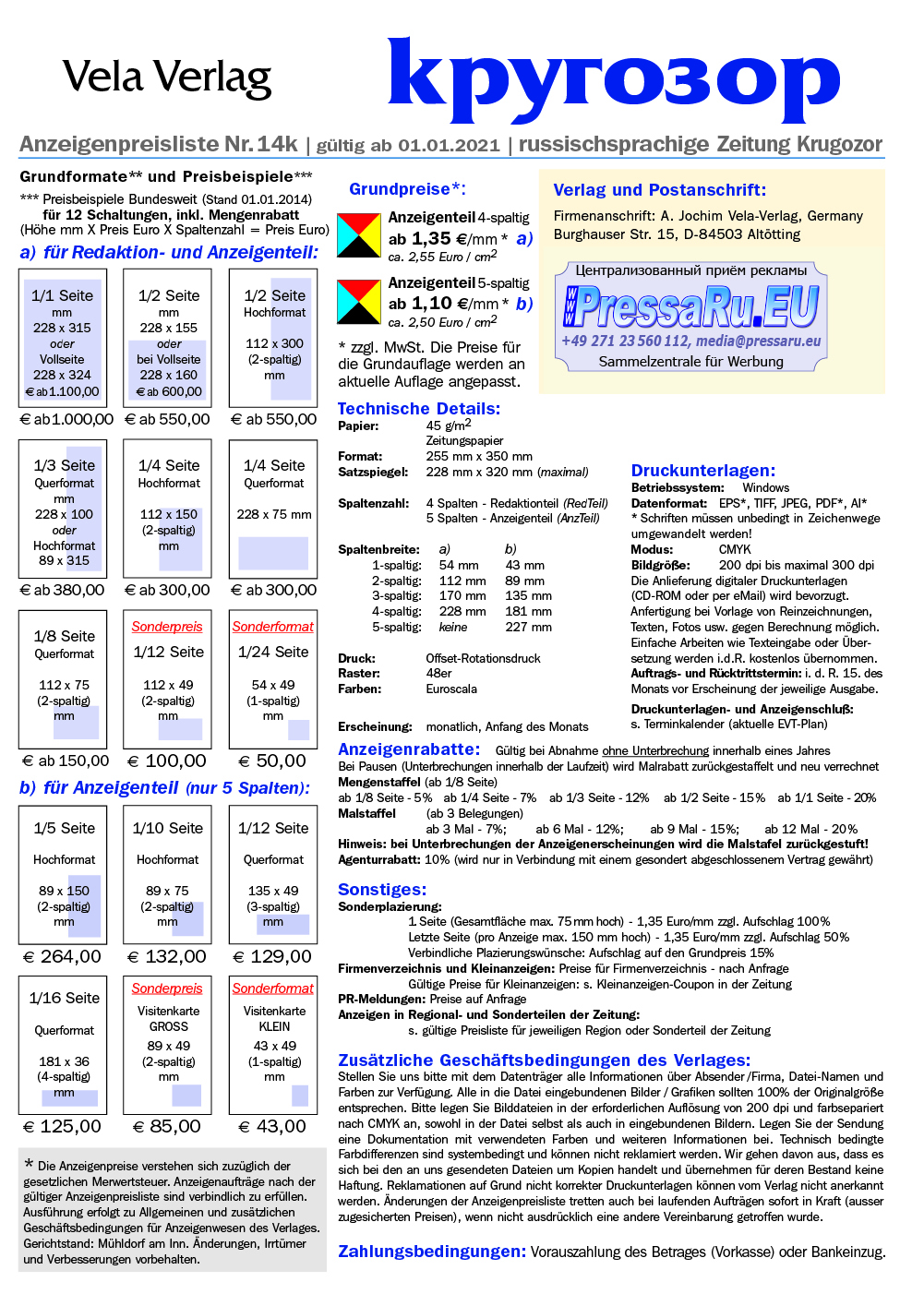 Бесплатная ежемесячная газета, предназначенная для посетителей русских магазинов. Газета «Кругозор» – это новости, интересные публикации в рубриках «Задушевный разговор», «Общественная жизнь», «Ваше право», «Автоновости», «Свой дом», короткие и рекламные объявления, это навигатор в «русскоговорящем мире» Германии. В газете выходит постоянное приложение «Мое здоровье», а также периодически разделы: «Русский магазин» и «Свое дело».